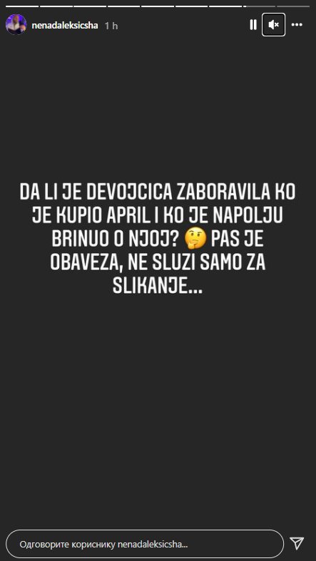 Da li je djevojčica zaboravila ko je kupio April i ko je napolju brinuo o njoj? Pas je obaveza, ne služi samo za slikanje - nastavio je reper.